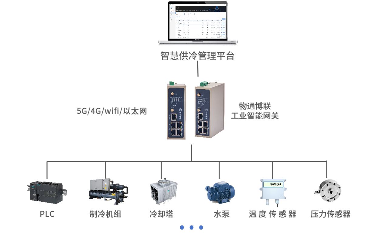 借助物通博聯的工業智能網關,實時采集供冷系統中制冷機組、冷卻塔、水泵等設備的運行數據,包括溫度、壓力、流量、功率等。同時,采集室內外環境溫度、濕度以及不同區域的冷量需求數據。將采集到的數據傳輸至智慧供冷管理平臺,平臺通過數據分析和算法模型,預測不同時間段和區域的冷量需求,優化設備運行參數,實現設備的智能控制。當設備出現異常或可能發生故障時,及時發出預警并提供故障診斷和處理建議。此外,平臺還具備能耗成本核算功能,為用戶提供詳細的能耗報告和成本分析,以便進行成本控制和節能決策。