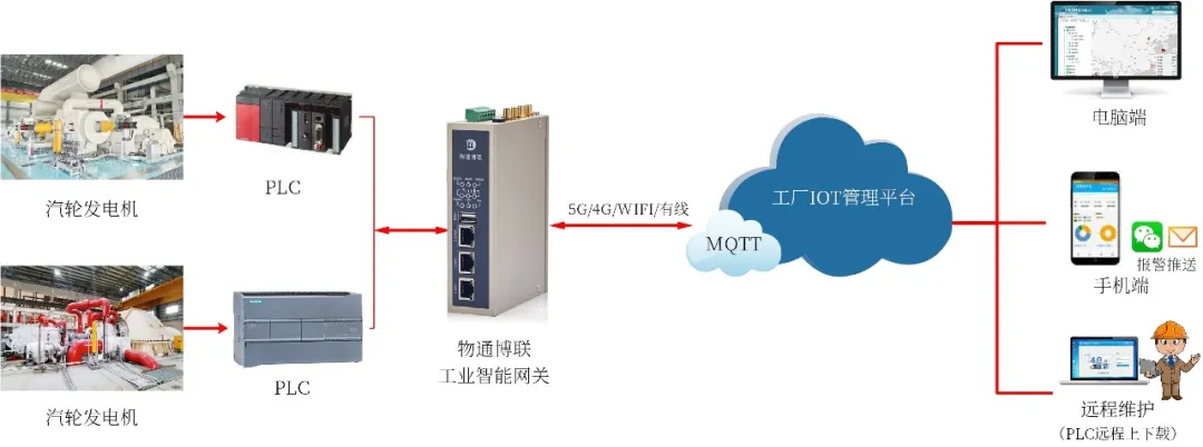 物通博聯(lián)·工業(yè)智能網(wǎng)關(guān)支持采集PLC、傳感器及智能儀表等設備數(shù)據(jù),實現(xiàn)5G/4G/WIFI/以太網(wǎng)等方式對接到云平臺或上位機中,同時具備斷點續(xù)傳功能,確保數(shù)據(jù)完整性與準確性。